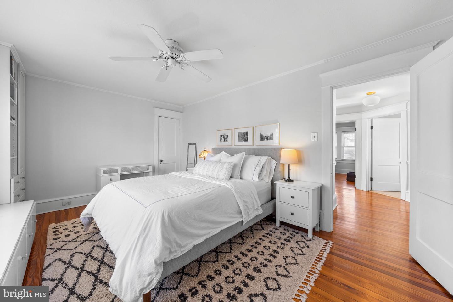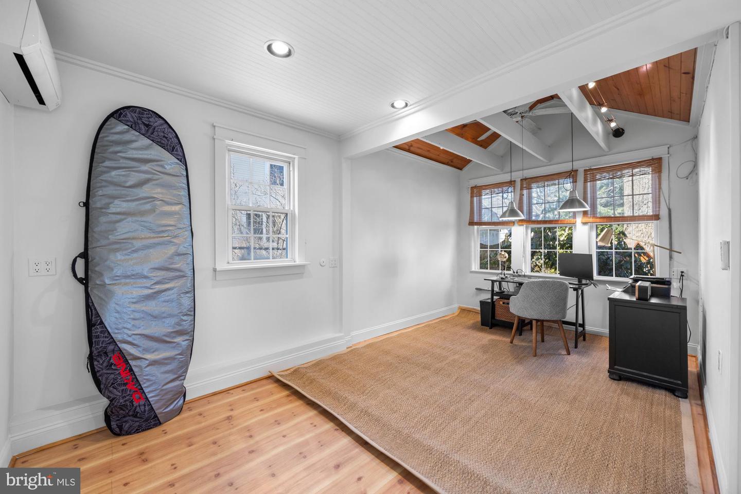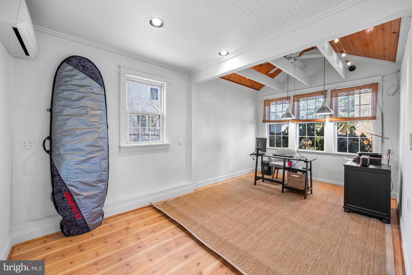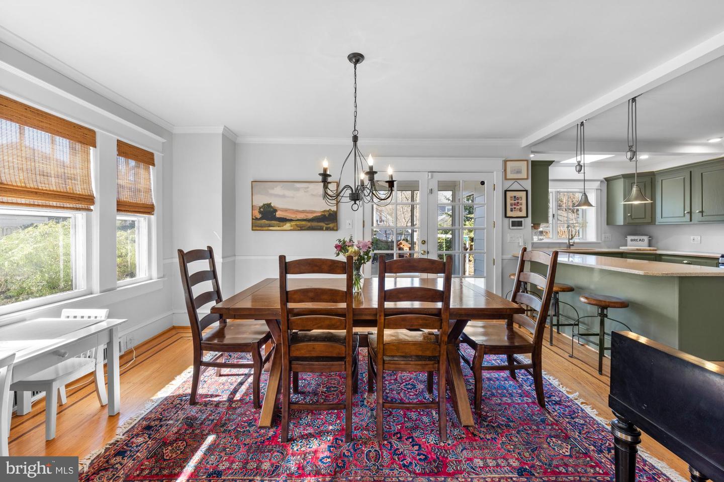 Nestled in the heart of Haddon Township's cherished Bluebird neighborhood, this charming home exudes an immediate sense of warmth and belonging. Situated on a tree-lined street just a block from Cooper River Park and the newly revamped New Jersey Park Playground, it's an ideal spot for families seeking a welcoming, community-oriented environment. The home greets you with a large, open front porch and original sunrise windows that set a delightful tone. Step inside to a bright front room anchored by a wood-burning fireplace with a brick surround, complemented by built-in sconces, oak floors with intricate inlaid details, and double sash windows with paneled tops. Throughout the house, original paneled doors with brass hardware blend seamlessly with modern updates like recessed lighting, creating a harmonious mix of old and new. The spacious kitchen shines with stainless steel appliances and stylish brushed adjustable pendants illuminating the breakfast bar, while skylights on both the first and second floors bathe the freshly painted interiors in warm, natural light. The dining room, with its oversized windows and French doors opening to a screened-in porch complete with a ceiling fan, offers a perfect setting for shared meals and gatherings.