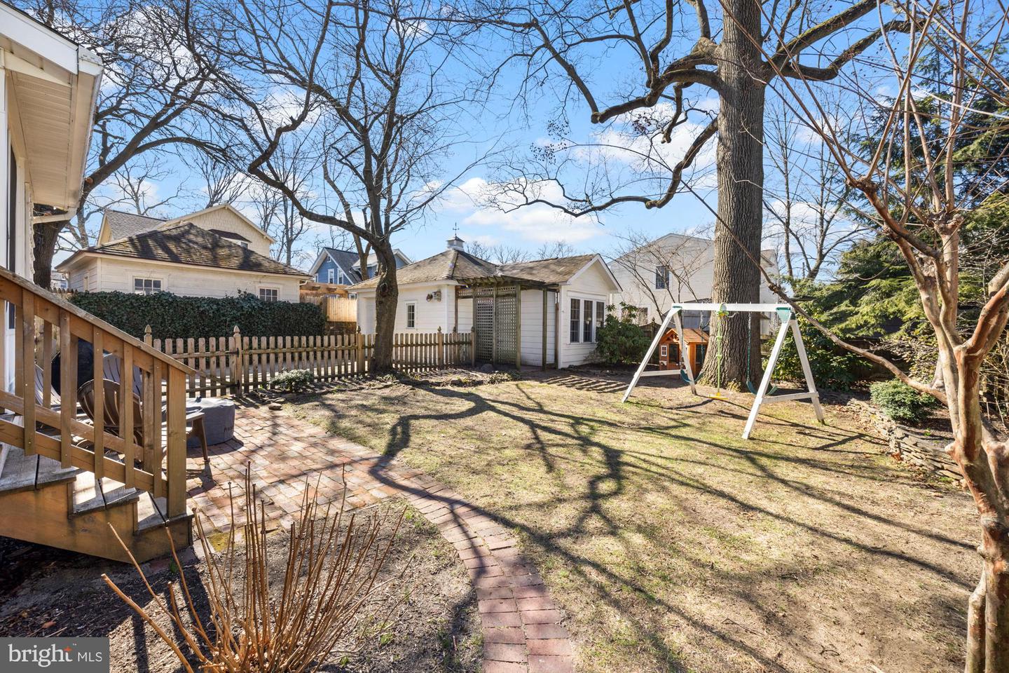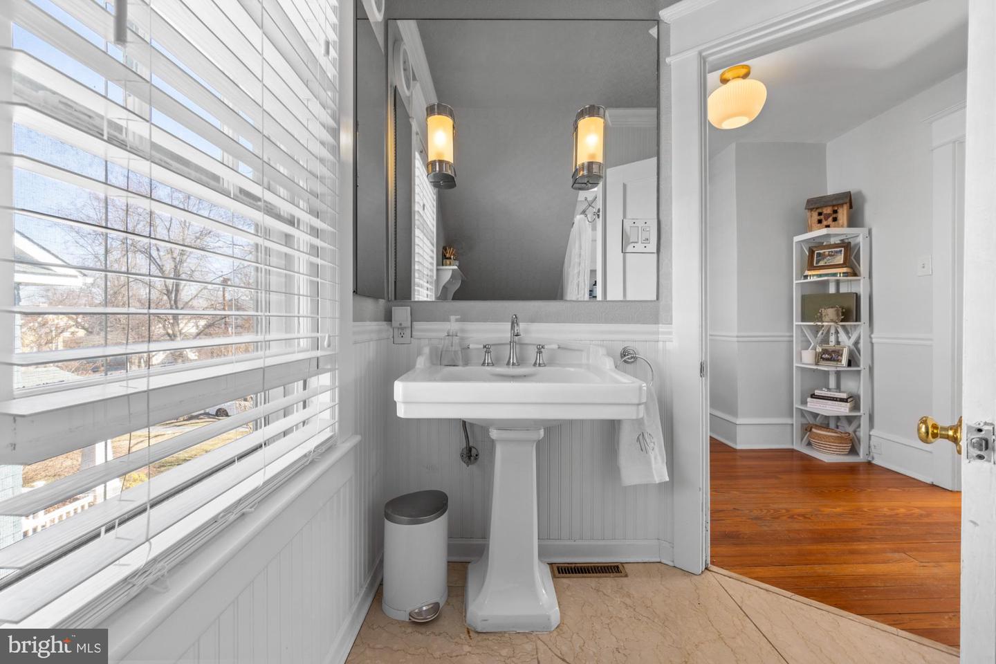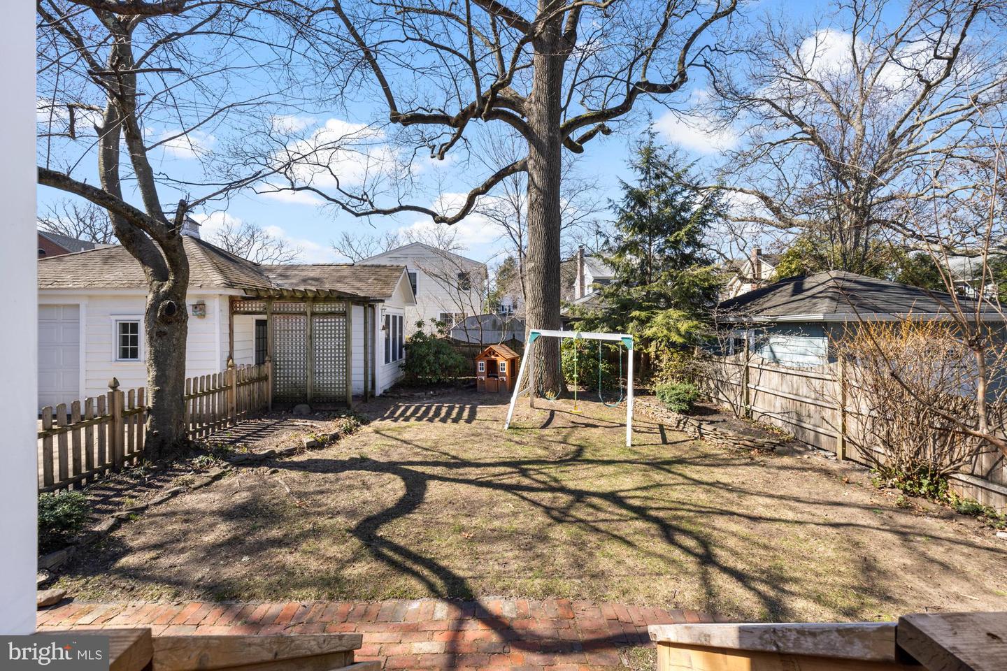 Upstairs, a generous landing leads to three bedrooms and a full bath, each space brimming with character. The main bedroom features built-in "his and hers" armoires, a sunny window seat, and two sizable closets, while the second bedroom impresses with a full wall of bookshelves, and the third offers a built-in book ledge with picturesque views of the mature trees and landscaping outside. The full bath is a standout, with painted embossed wallpaper, a tiled shower surround with a tub, a large vintage pedestal sink, and striking marble slab flooring. Downstairs, the partially finished basement provides versatile creative spaces, including a homemade wine closet, a large cedar-lined wall closet, ample storage, a laundry area, and access to an unfinished mechanical room. Attached to the garage is a fantastic bonus space, ideal as a yoga or exercise studio or a quiet home office for remote professionals. Outside, the well-landscaped yard is fenced with a pergola off the garage that leaves a needed functional space with charm for family and gardening. Rounding out this exceptional property is the rare garage bonus space, a feature that sets it apart from most homes in the neighborhood, making it a true gem in Haddon Township.