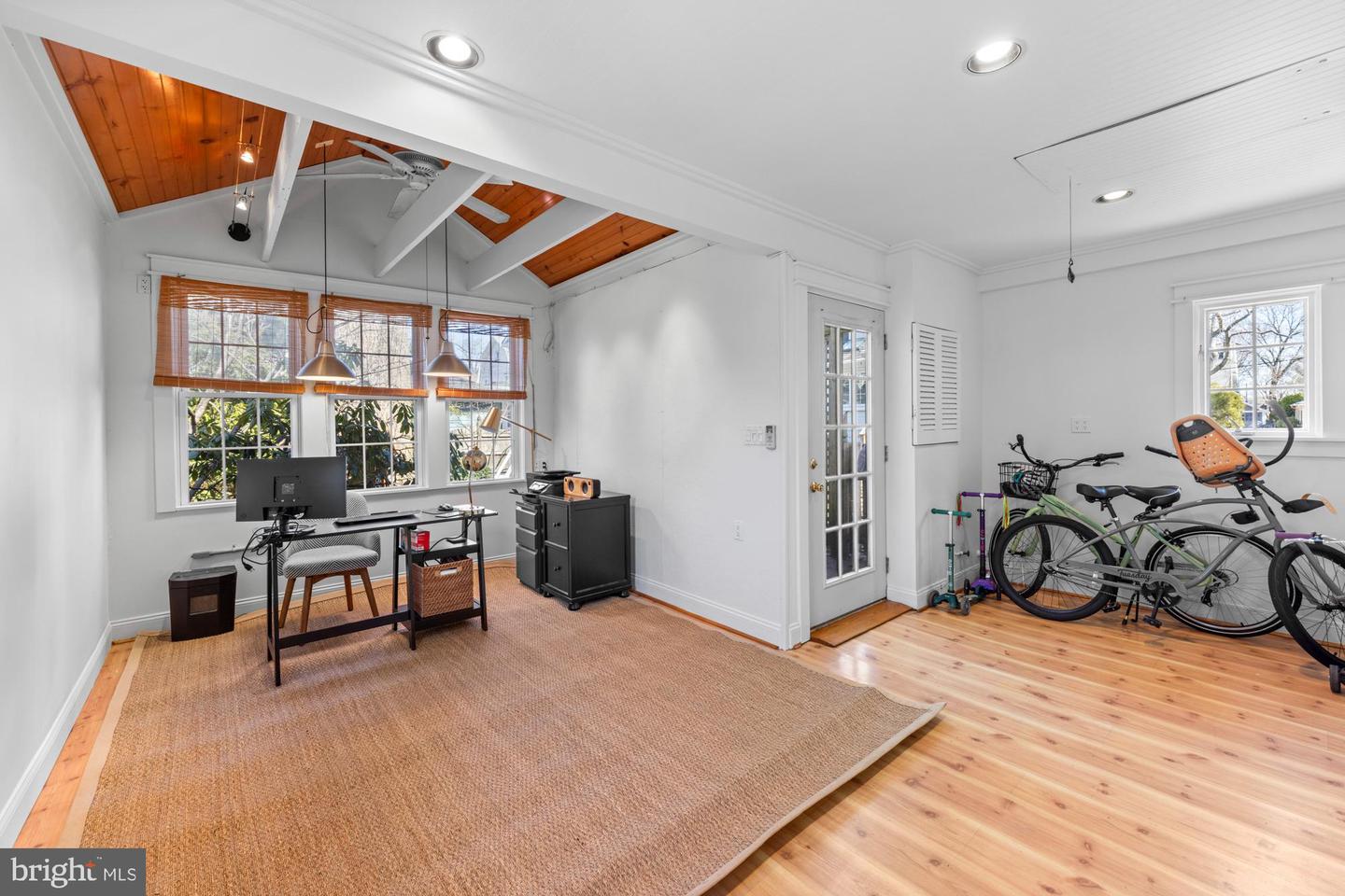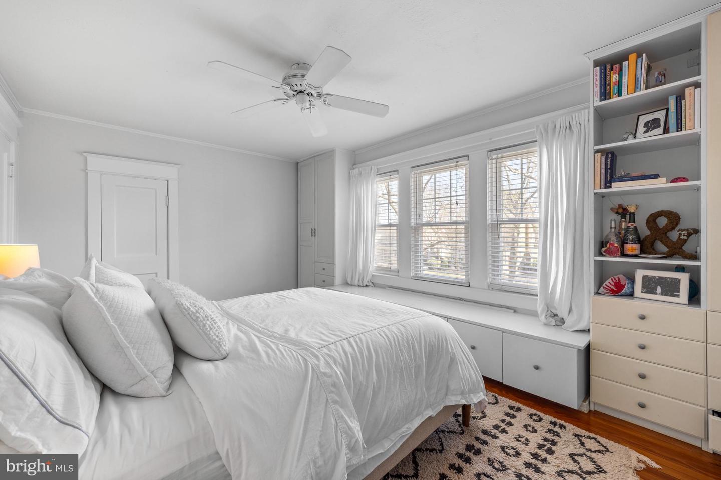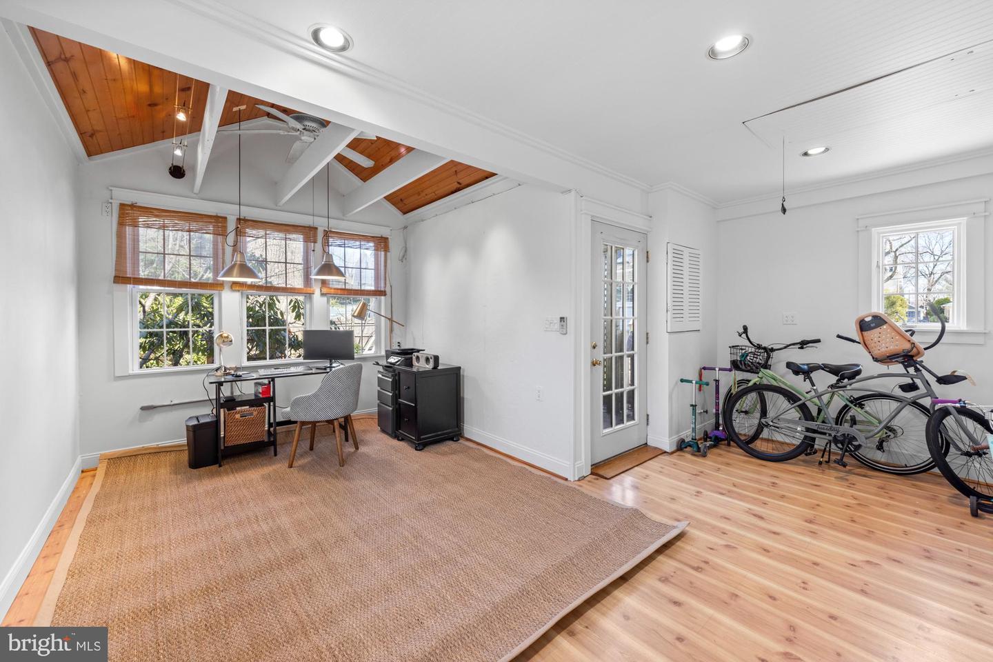 Upstairs, a generous landing leads to three bedrooms and a full bath, each space brimming with character. The main bedroom features built-in "his and hers" armoires, a sunny window seat, and two sizable closets, while the second bedroom impresses with a full wall of bookshelves, and the third offers a built-in book ledge with picturesque views of the mature trees and landscaping outside. The full bath is a standout, with painted embossed wallpaper, a tiled shower surround with a tub, a large vintage pedestal sink, and striking marble slab flooring. Downstairs, the partially finished basement provides versatile creative spaces, including a homemade wine closet, a large cedar-lined wall closet, ample storage, a laundry area, and access to an unfinished mechanical room. Attached to the garage is a fantastic bonus space, ideal as a yoga or exercise studio or a quiet home office for remote professionals. Outside, the well-landscaped yard is fenced with a pergola off the garage that leaves a needed functional space with charm for family and gardening. Rounding out this exceptional property is the rare garage bonus space, a feature that sets it apart from most homes in the neighborhood, making it a true gem in Haddon Township.